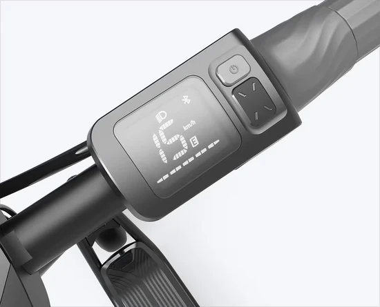 NIU designed the 100F with comfort and control in mind, using 9.5″ pneumatic tires, a front drum + regenerative brake system, and an IPX5 water-resistant build. It also includes front and rear LED lighting, side reflectors, and a clear LCD dashboard with four riding modes—E-Save, Sport, Custom, and Pedestrian.